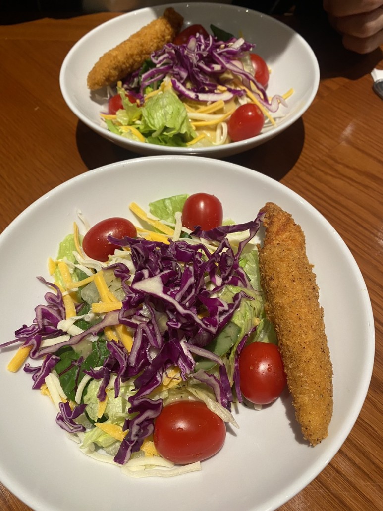 수프는 유료로 샐러드 변경 가능. 드레싱은 허니머스터드, 레몬, 렌치, 블루치즈 있고 허니머스터드가 가장 일반적이고 제 입맛엔 가장 맛있어요. 유료로 텐더스틱 추가하시면 작은 치킨텐더 샐러드 완성!
